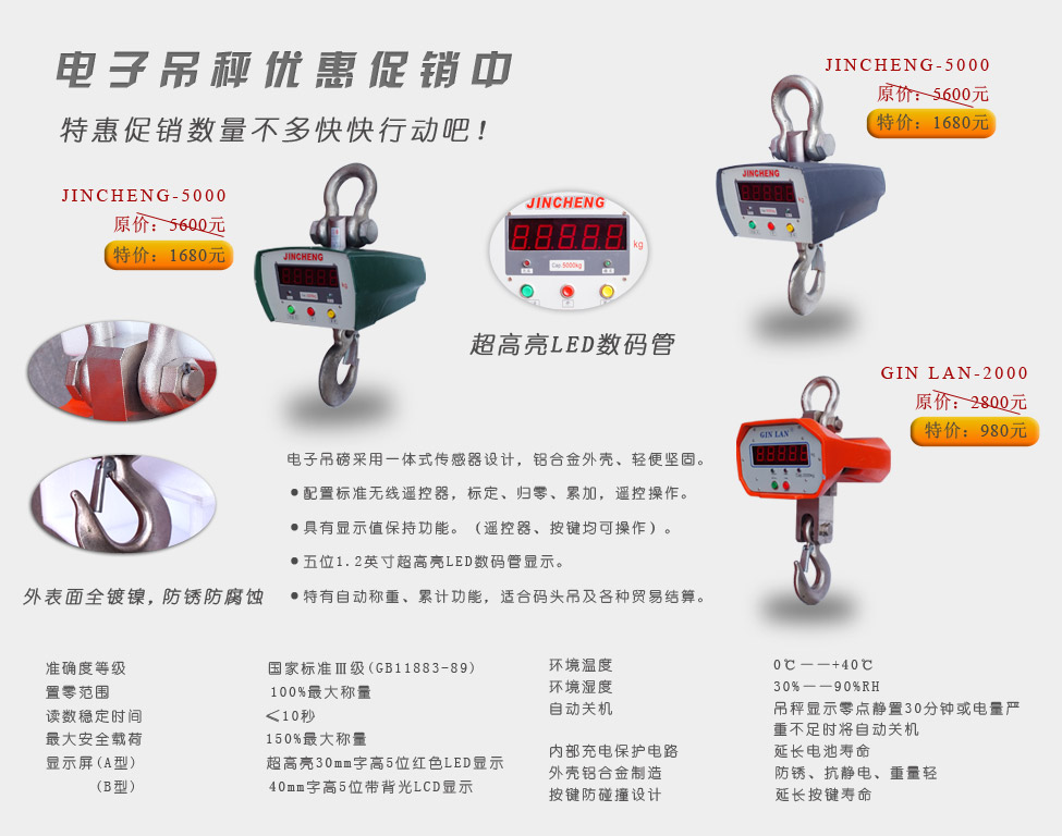 電子吊秤優(yōu)惠促銷 勁爆價優(yōu)惠超過團購價,最高三折,數量有限。咨詢:4000217728