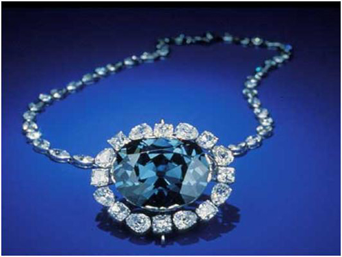 這是世界罕見的深藍(lán)色鉆石,現(xiàn)存于美國華盛頓斯密斯研究院的珠寶大廳里,300多年前在印度被發(fā)現(xiàn),原重112.5克拉,后幾經(jīng)切割,終成現(xiàn)在的樣子,經(jīng)專業(yè)電子天平稱得重量為44.4克拉。希望之星同攝政王鉆石一樣有厄運(yùn)的傳說,據(jù)悉,幾百年來擁有此鉆石的人都死于非命,更加重了它神秘的色彩。
