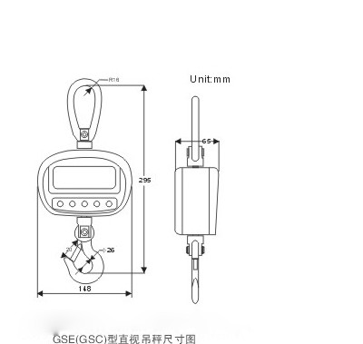 產(chǎn)品執(zhí)行標(biāo)準(zhǔn):GB/T 11883-2002 準(zhǔn)確度等級(jí): 國(guó)家標(biāo)準(zhǔn)Ⅲ級(jí) 量程:300kg、500kg、1噸、2噸、3噸 讀數(shù)穩(wěn)定時(shí)間:<10秒 最大安全載荷:150%最大稱量 顯示屏規(guī)格: GSE系列,超高亮15 mm字高5位紅色LED顯示 GSC系列20 mm字高5位LCD帶背光液晶顯示 旋 轉(zhuǎn):360度旋轉(zhuǎn)式安全吊鉤設(shè)計(jì) 環(huán)境溫度:-10℃~40℃ 環(huán)境濕度:30%~90%RH 低電壓指示:吊秤電量不足時(shí)低電壓指示燈點(diǎn)亮 電 源: 四節(jié)AA/1.5V堿性電池、四節(jié)1.2V鎳氫/鎳鎘電池(可選件)、7.4V/2AH鋰電池(可選件) 充電器: 輸入AC100~240V,輸出DC8.4V/500mA(可選件) 自動(dòng)關(guān)機(jī):吊秤顯示零點(diǎn)靜置30分鐘或電量嚴(yán)重不足時(shí)將自動(dòng)關(guān)機(jī) 外 殼:安全工程塑料制造,防腐、抗靜電、重量輕 按 鍵: 輕觸式按鍵