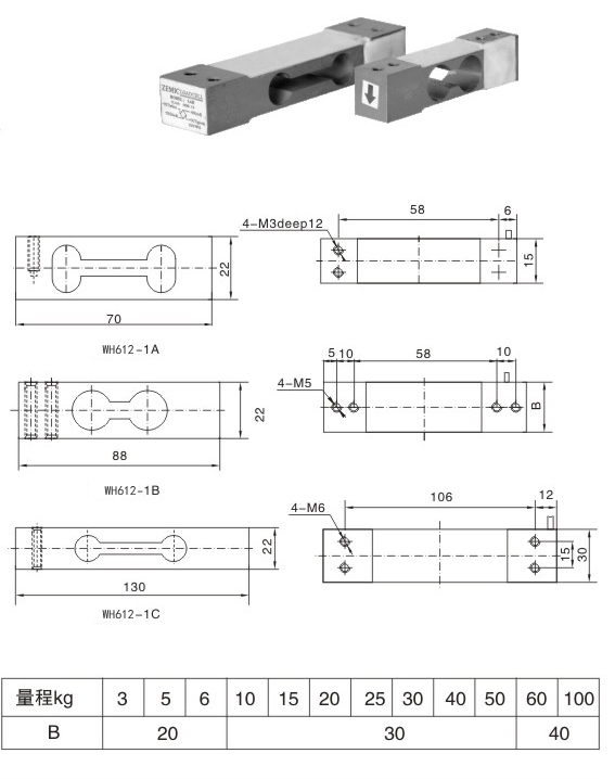 量程:3kg、5 kg、6 kg、10 kg、15 kg、20 kg、25 kg、30 kg、50 kg、60 kg、100 kg、。