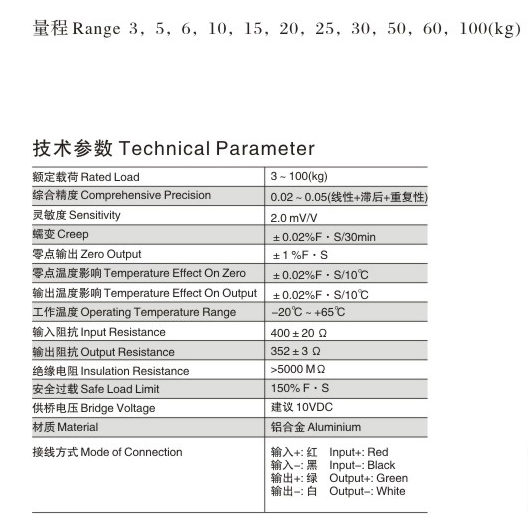 量程:3kg、5 kg、6 kg、10 kg、15 kg、20 kg、25 kg、30 kg、50 kg、60 kg、100 kg、。